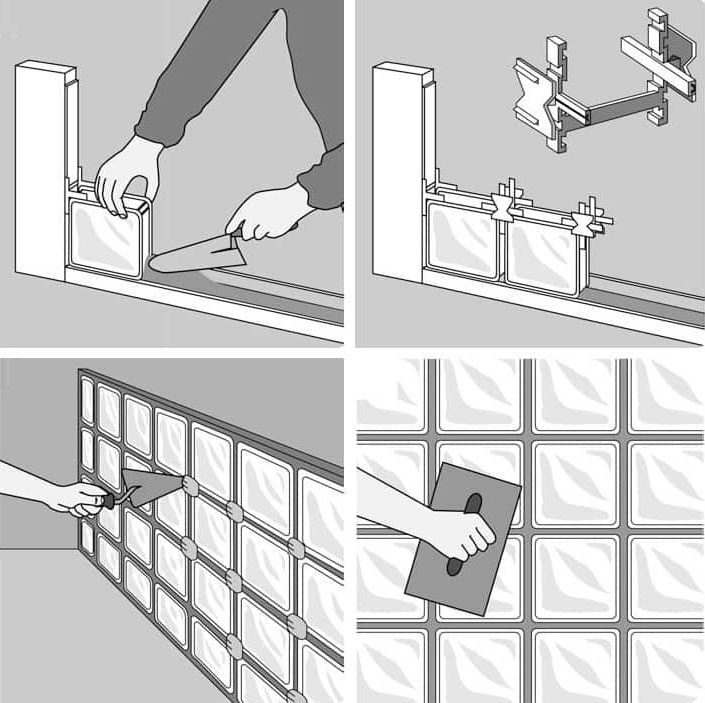 유리블럭을 더 쉽고 빠르게 시공하기 위해서 쎄베스는 다양한 플라스틱 스페이서를 제공하여 조인트 간 일정한 간격을 유지할 수 있어