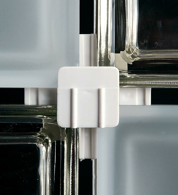 스페이서는 원하는 조인트 와벽타입 (선형 또는 곡면)에 따라 선택 할 수 있는 플라스틱 부자재입니다. 블럭사이에 위치시키면 두께가 일정하고 규칙적인 간격을 만들고 지지로드를 정렬하고 유리블럭과 접촉하지 않도록합니다.