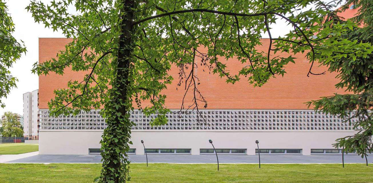 경기장은 클럽박물관, 쇼핑몰, 헬스클럽 및 기타여러 단체를 포함하는 더 큰 복합단지의 중심입니다. 이거대한프로젝트에서 유리블록은 구조에 방음을 제공하는데 사용되어 동시에 독창성과미학을 결합합니다.