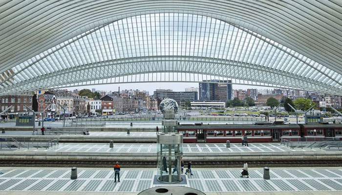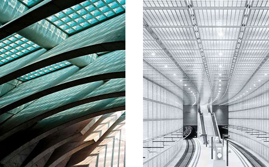 새로운역은 강철, 유리 및 흰색 콘크리트로 만들어졌습니다. 플랫폼 위 유리블록 포장으로 인해 자연채광이 들어오기 때문에 어두운 지하도가 없습니다. 구조의 모든 부분에 일광이 넘칠수 있어야 합니다.