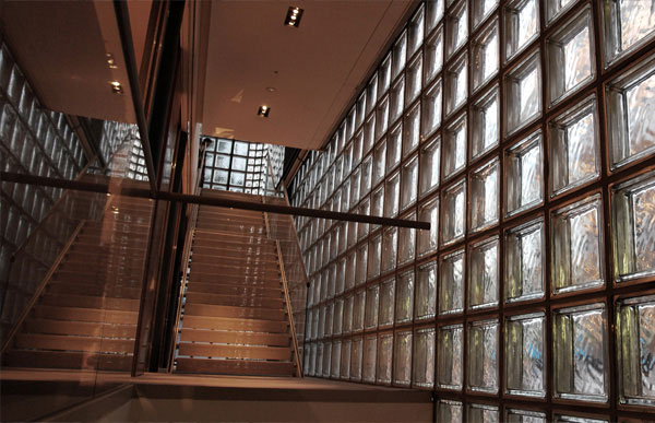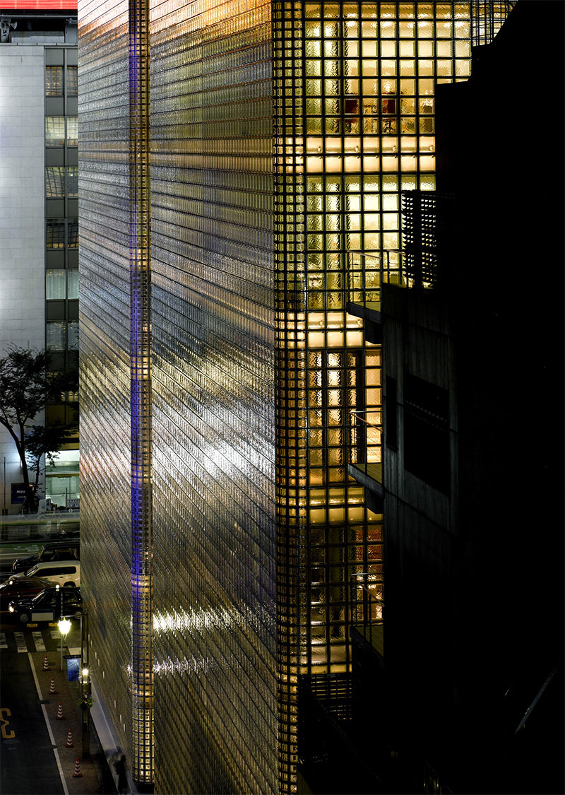메종에르메스를 구성하는 13,000개의 독립형 유리블럭은 낮에는 태양 빛을 반사하고 밤에는 내부조명을 비춥니다.