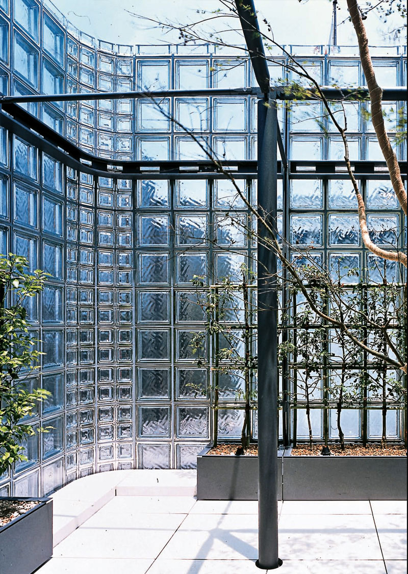 2001년에 개장한 메종에르메스는 렌조피아노가 설계했으며 도쿄 긴자 지구의 중심에 우뚝 솟아있으며 건물면적은 6,000 제곱미터 이며
