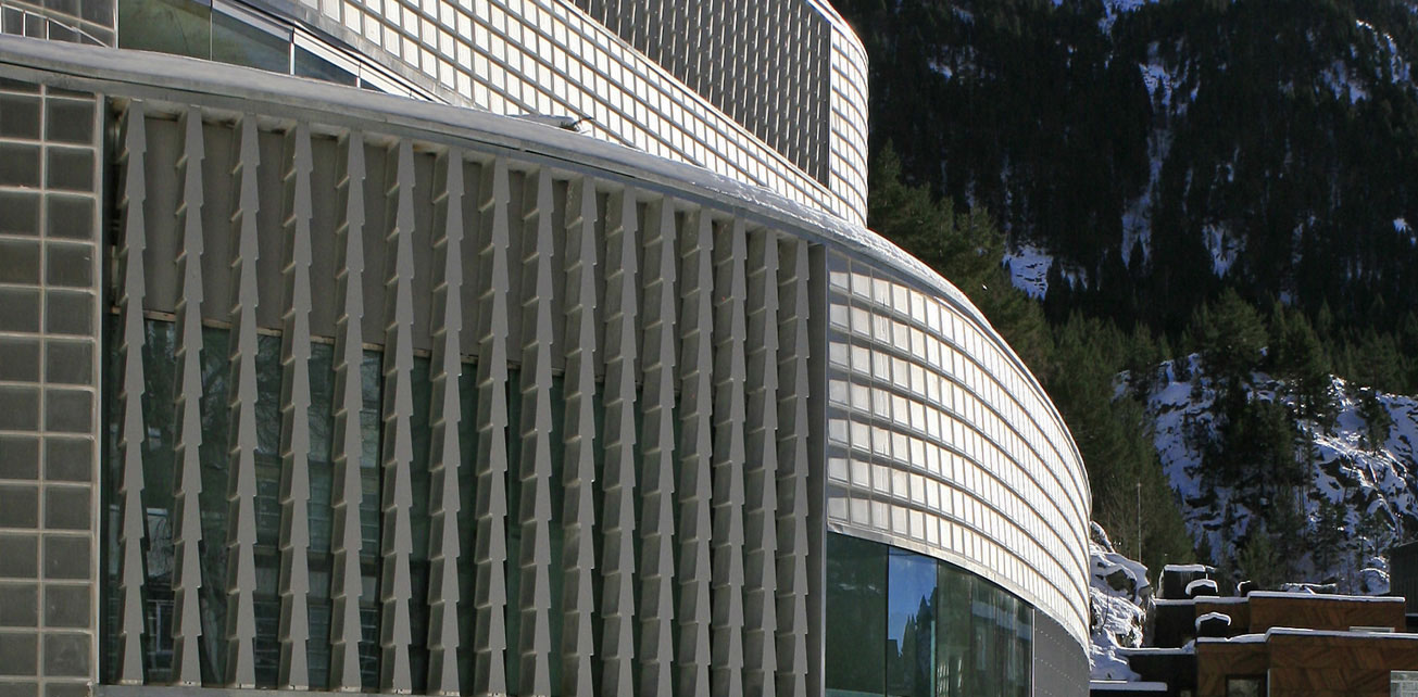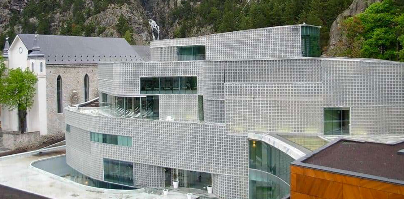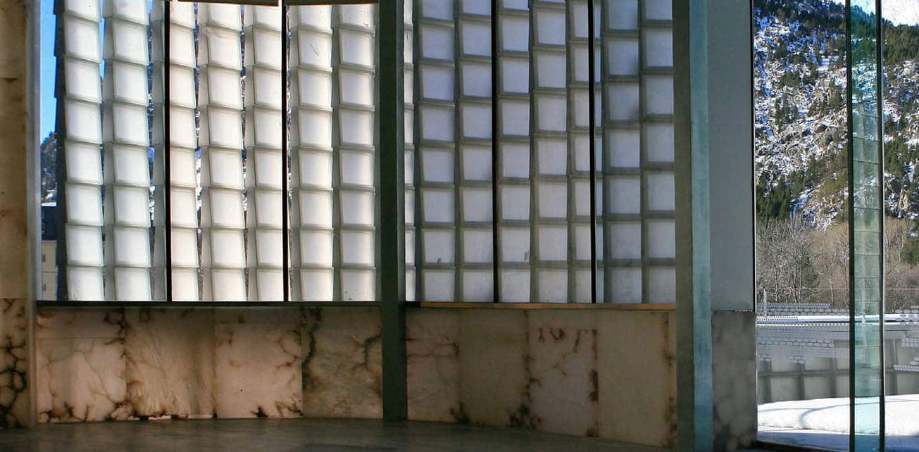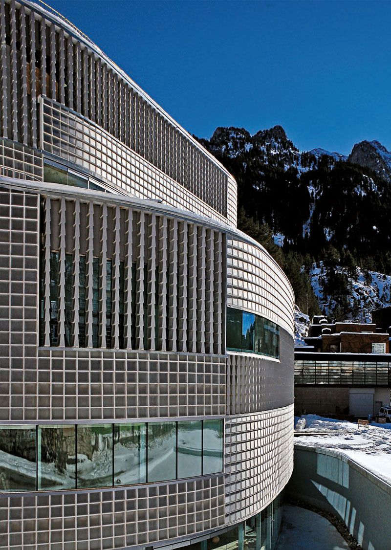 스페인 피레네산맥에 위치한 BALNEARIO DE PANTICOSA를 위해 제작된유리블럭. 자연과 제품의 "크기에 따른" 조화로운 결합.