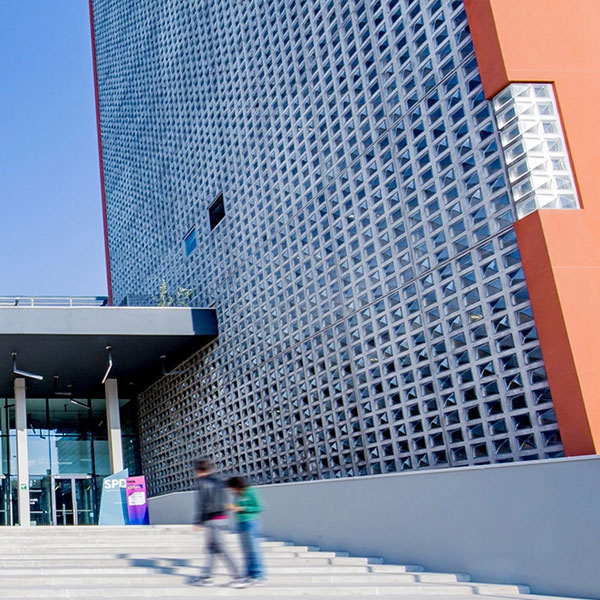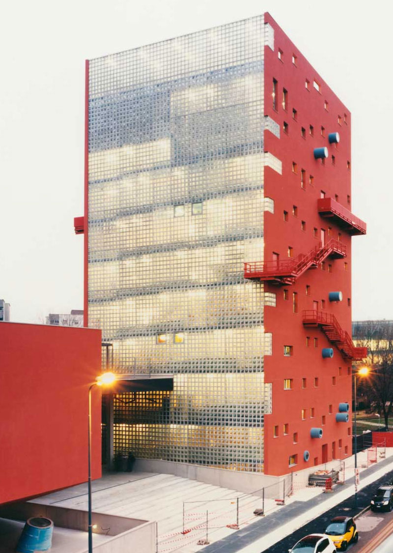 IULM 확장프로젝트에서 약. 17,500개의 Q30 다이아몬드 블럭이 대학의 모든 유통경로와 디지털도서관을 수용할 11층 타워주변에 사용되었습니다. 유리블럭을 사용하기로 한 결정은 전체적인 투명성과 기존볼륨의 무게 및 그림자와 잔향을 생성 할 수 있도록 모두 고려해야 할 필요성과 관련이있습니다.